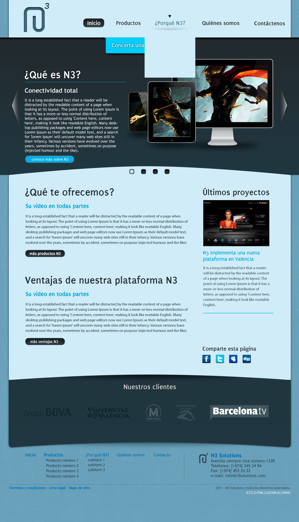 For N3 I did wireframing, prototyping, design, and front-end coding. I was in charge of the general art for the website and it's apps, graphic design and CSS/HTML coding.