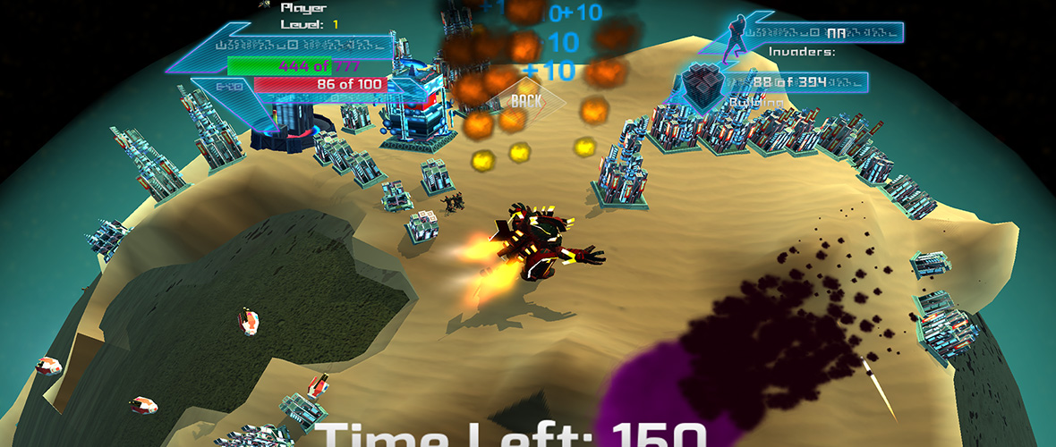 On this project I was in charge of the general art direction. I conceptualized the design of the game, created most of the characters and planets (concept art, modeling, texturing, riging and half the animations) I also did art direction and concepting for all the other characters and environments.